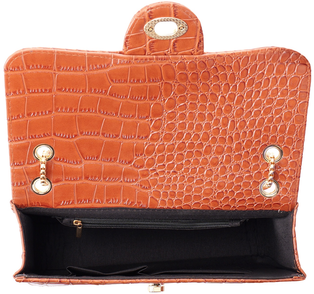 R-F7.2 BAG1117-005-5 PU Bag Faux Crocodile 27x17x7.5cm Brown
