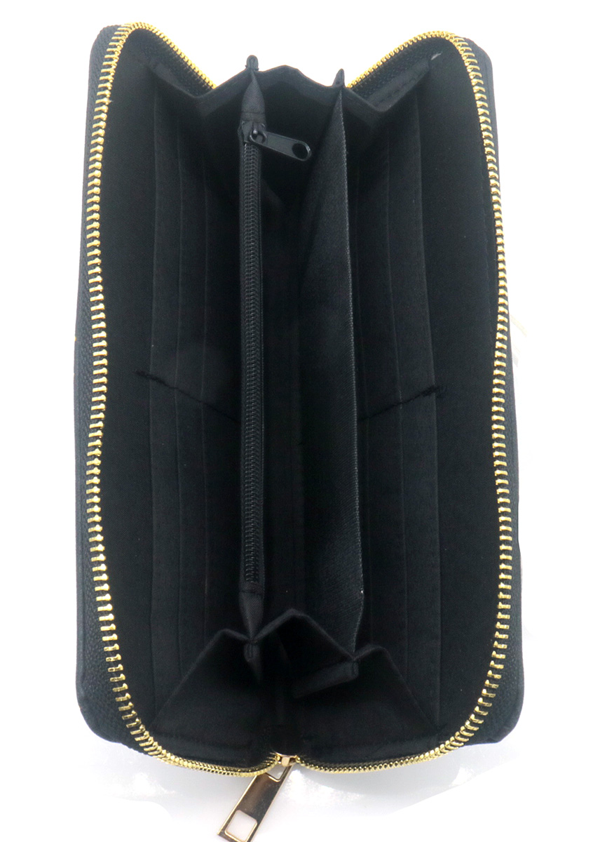 R-K4.2 WALLET1019-002-1 Pu Wallet Flower Embroidery 20x10x2.5cm Black