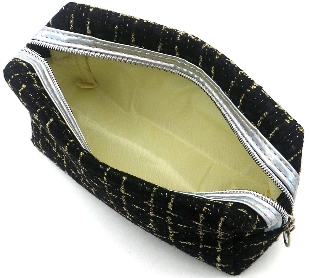 Sa taille compacte le rend idéal pour voyager ou pour le glisser dans votre sac à main, tandis que son intérieur spacieux offre suffisamment d'espace pour votre maquillage, vos pinceaux et autres accessoires de beauté indispensables. La fermeture éclair sécurisée garantit que vos articles restent en sécurité, ce qui en fait un choix pratique pour le glamour en déplacement.