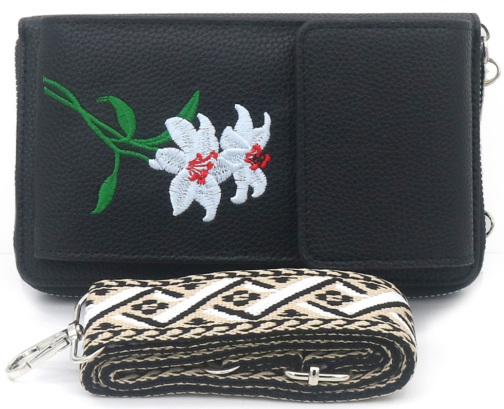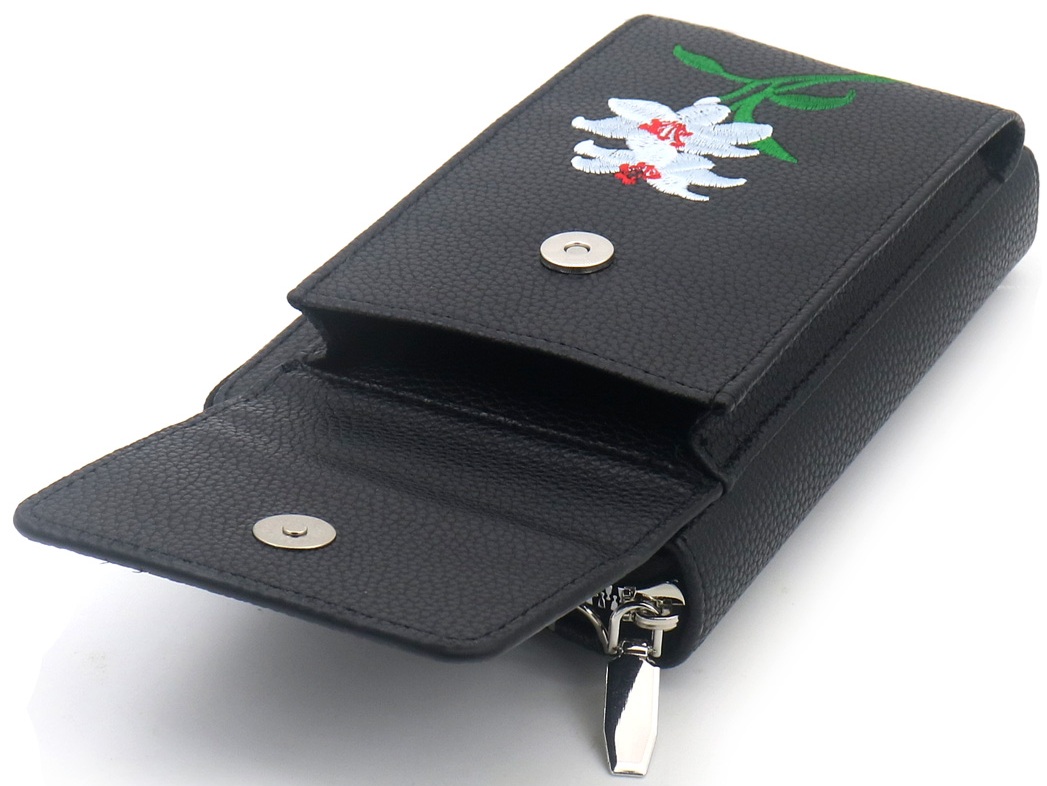 R-N8.2 BAG1113-001-1 PU Bag Embroidered Flowers 18x10.5x5cm Black