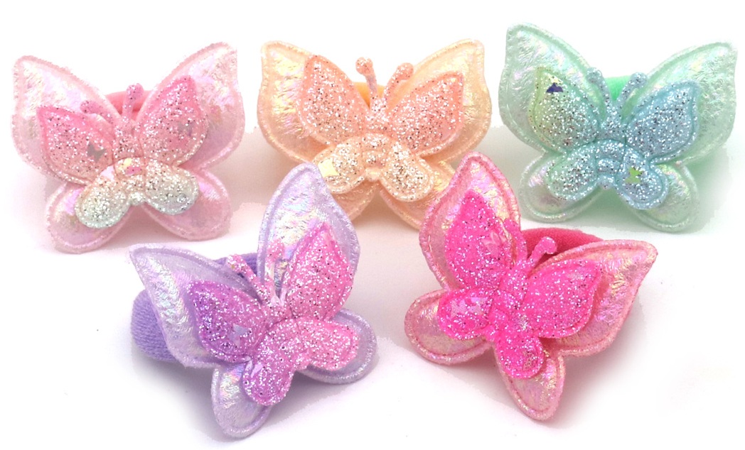 S-E1.1 H1125-004 Hair Elastics Butterflies for Kids - 6pcs