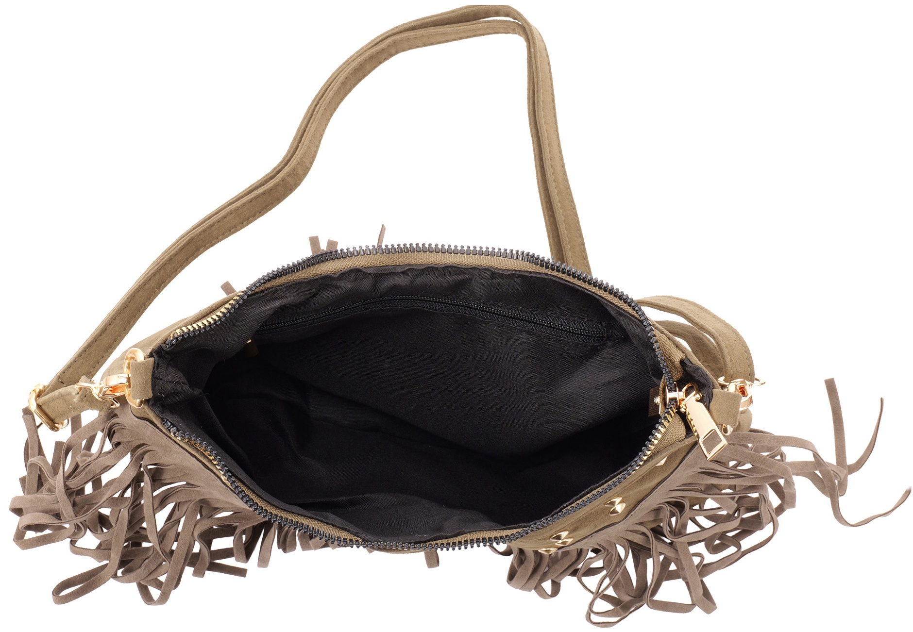 T-K7.2 BAG1122-002-5 PU Bag with Studs and Tassels 28x19cm Green