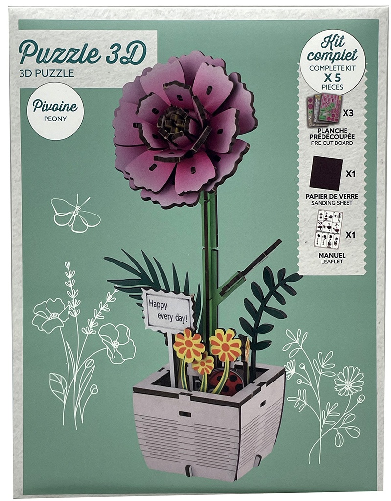 Libérez votre créativité et plongez-vous dans le monde des puzzles 3D avec le puzzle 3D en bois X-K5.2 TOY1153-004-2 Flower – où l'art rencontre le plaisir !
