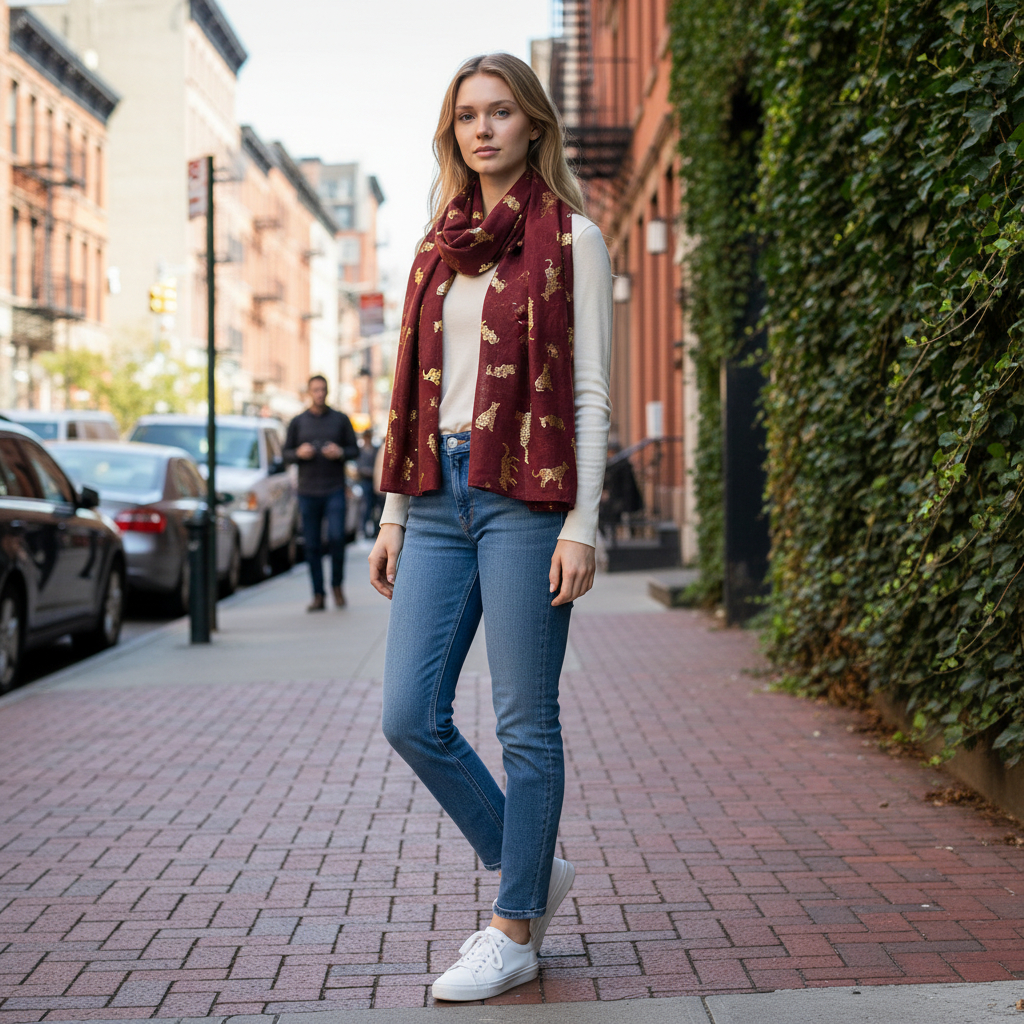 Fabriquée à partir de viscose de haute qualité, cette écharpe offre une sensation douce et légère qui s'enroule magnifiquement autour du cou ou des épaules. Le tissu respirant assure un confort tout au long de la journée, que vous vous habilliez pour une occasion spéciale ou que vous ajoutiez une touche de style à votre tenue de tous les jours.