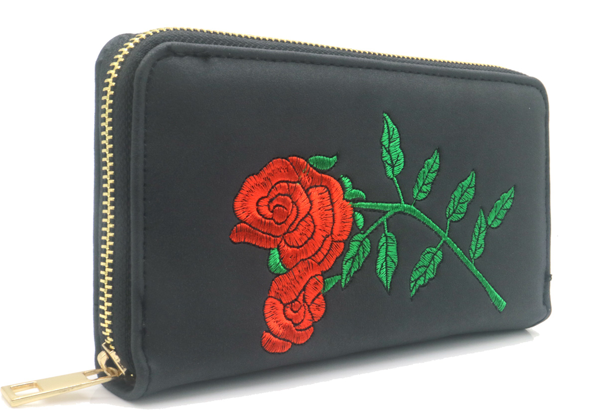 X-P2.1 WALLET1019-003-1 Pu Wallet Roses Embroidery 20x10x2.5cm Black