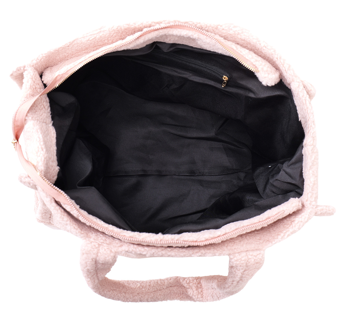 Fabriqué à partir de matériaux de haute qualité, le sac présente un charmant design en peluche dans une charmante teinte rose, ajoutant une touche de plaisir et de personnalité à votre tenue. Les poignées robustes assurent un transport confortable, tandis que l'intérieur spacieux offre suffisamment d'espace pour vos affaires.