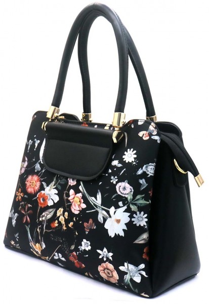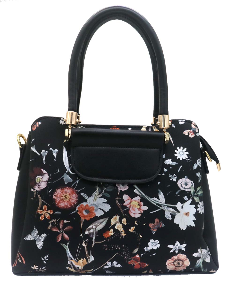 Z-C3.1 BAG734-002 No. 1 PU Bag Floral 30x24x12cm Black